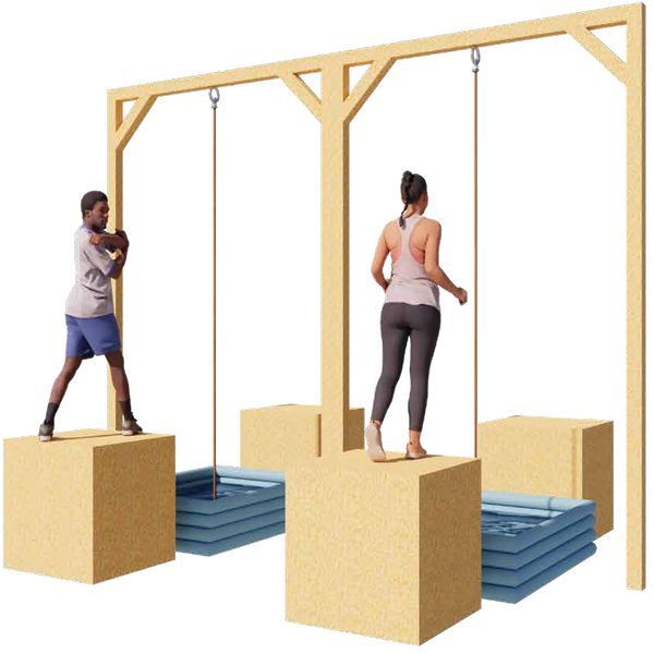 다양한 난이도의 15개 장애물 구간이 준비되어 있으며,어려운 장애물은 동료 참가자와 함께 협동하여 도전하실 수 있습니다.